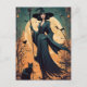 Cartão Postal Bruxa de Arte Deco com Gato Preto e Lua Completa