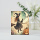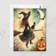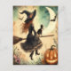 Cartão Postal Bruxa de Halloween com vassoura e gato
