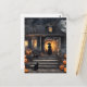 Cartão Postal Bruxa de Halloween e Casa Assombrada
