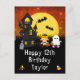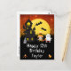 Cartão Postal Bruxa de Halloween Fantasma Laranja Feliz Aniversá
