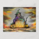 Cartão Postal Bruxa e gato preto, Feliz Halloween!