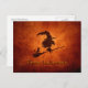 Cartão Postal Bruxa e Silhueta Gato voando em Broomstick