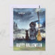 Envie um toque de magia com esta charmosa carta de saudação de aquarela de Farida Greenfield, mostrando uma cena encantadora de uma bruxa e seu gato preto desfrutando de uma noite pacífica em um prado de grama. O sereno debaixo de uma lua de prateio e estrelas cintilantes cria uma atmosfera mágica que certamente trará um sorriso ao rosto do receptor. A design do cartão é para as saudações do Dia das Bruxas Felizes.