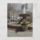 O cartão postal apresenta uma fotografia original de um plantador de tulipas amarelas e a fonte no Parque Bryant, com a rua 42 à distância. Tirada na Nova Iorque, NYC.