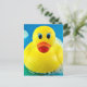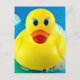 Uma fotografia fofa de um pato de borracha sentado em bolhas sobre um fundo azul brilhante. Copyright © 2007 Karin Hildebrand Lau.