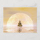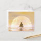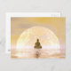 Pequeno Buda em frente à lua grande pela luz rosa linda da manhã