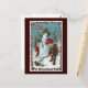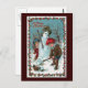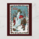 Imagem de natais vintages adoráveis de duas crianças construindo um boneco de neve. A criança maior está enfiando a neve e a menor se esconde atrás do boneco de neve se preparando para jogar uma bola de neve. A mensagem é "Um Feliz Natal".