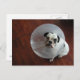 O filhote Selma não ficou feliz depois que o médico veterinário colocou este pinho de plástico terrível na cabeça