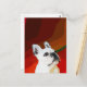 White French Bulldog Retrato de Bulldog Branco Digitalmente pintado com um fundo vermelho, laranja e verde.