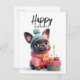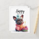 Buldogue francês fofo, vestido rosa, bolo de aniversário Cartão postal