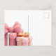 Cartão Postal Buldogue francês fofo, vestido rosa, bolo de anive