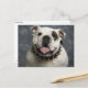 Cartão de animais mostrando um buldogue inglês. O Bulldog é uma raça média de cães, vulgarmente conhecida como o Bulldog Inglês ou o Bulldog Britânico. O Bulldog é um cão pesado, muscular, com um rosto enrugado e um nariz embutido.