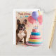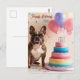 Cartão Postal Bulldog Francês com bolo de aniversário