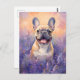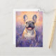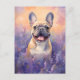 Cartão Postal Bulldog Francês em campo de Lavanda