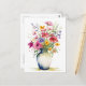 Este belo cartão postal com um buquê de flores vibrantes em aquarela em um vaso multicolorido pode ser personalizado para qualquer ocasião.