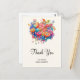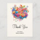 Obrigado postal com uma coleção colorida de flores de primavera e verão. Cor de laranja rosa e azul dominam o esquema de cores. Um arranjo floral brilhante e ousado exude felicidade. :)