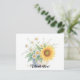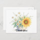 Um buquê de verão de margaridas brancas e um único girassol amarelo cria um doce cartão postal de agradecimento estilo country.
