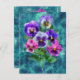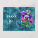 Colorido buquê de aquarela de violetas flores de pensamento em um fundo de aquarela azul turquesa e a inscrição OBRIGADO no verso. Você pode alterar o texto, a cor e o estilo da fonte usando a opção personalizar ainda mais.
