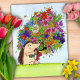 Um ouriço segurando um monte de flores.