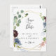 Este burgundy de ouro geométrico para salvar o cartão postal é perfeito para um casamento no inverno. O elegante design apresenta marinho de aquarela, cor-de-rosa-pincelada e flores de sombra de vinho com detalhes artísticos lápis.
