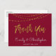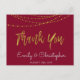 Luzes de Cordas de Folha de Ouro e Script Manuscrito Burgundy Marsala Elegante Obrigado Cartão de Convite.