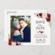 Cartão Postal Burgundy Red Floral Chic Salve a Foto da Data