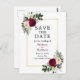 Cartão Postal Burgundy White Floral Salve A Data Dourada