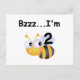 Uma abelha e um texto tão fofinhos que diz "Bzzz... Eu tenho 2" em t-shirts de segundo aniversário de Buzz Bumblebee, fatos de corpo, cartas, autocolantes, canecas, ímanes, sacos de tote e outros presentes de primeiro aniversário.