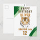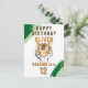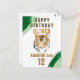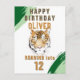 Cabeça de Tigre Selvagem Aquarela Aniversário Cartão de Aniversário. Com uma cabeça de tigre em aquarela, pinceladas verdes ousadas e texto personalizável, este design é perfeito para qualquer jovem aventureiro. Personalize com qualquer nome e idade para criar um cumprimento verdadeiramente único e memorável. Ideal para festas temáticas de selva ou amantes de tigres.
