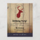 Convite de festa de aniversário com estilo rústico. Projetado com uma cabeça de veado com chifres, feito de xadrez vermelho. Uma moldura oval sofisticada envolve a imagem. Tábuas de madeira falsa dão a ela um clima country ao ar livre.