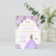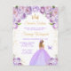 Este convite de aniversário de sweet sixteen elegante e glamoroso apresenta uma bela princesa com cabelos loiros em um vestido de baile lilás claro. O texto combina caligrafia manuscrita e fontes modernas sem serifa para um visual sofisticado e elegante. Os arranjos florais, borboleta e confetes dourados criam a combinação perfeita de rústico e chique.