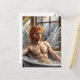 Cartão Postal Cabelo Vermelho do Homem Anjo Fada no Banho