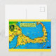 Um antigo mapa de cartão-postal colorido de Cape Cod, Massachusetts reaproveitado!