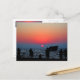 As pessoas se reúnem para ver o sol da noite cair. O objeto escuro ao largo da costa são os restos de um barco de cimento da 2ª Guerra Mundial.