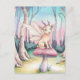 Cartão Postal Cabra Mágica senta num Cogumelo na Floresta