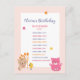 Cartão postal do jogo de caça ao tesouro de aniversário infantil com desenho de animais fofos.