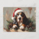 Cartão Postal Caça-Basset numa Pintura a Óleo de Santa Hat