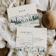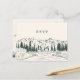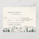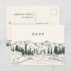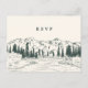 O cartão de resposta postcard marfim quente combina com os convites de casamento e evento rústicos e elegantes Mountain Sketch, e apresenta uma pequena ilustração de picos de montanha e árvores de pinheiro evergreen. Personalize com a data de RSVP desejada e escolhas de refeição ou seleções de prato principal.