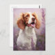 Cartão Postal Cachorro Brittany em campo de Lavanda