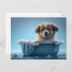 Cartão Postal Cachorro Cachorro no Banheira Azul