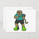 Cartão Postal Cachorro como tenista com raquete de tênis