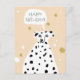 Cartão de aniversário dalmaciano personalizado. Ilustração perfeita de cão abstrato para amantes de cães! Cachorro bonito, engraçado, pintado dalmaciano com estrelas brancas design. Mãe de cão Dalmaciano, pai de cão dalmaciano, esta é para ti. Também ilustração dalmática de cão para crianças.