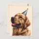 Ótima ilustração de desenho animado do Ouro Retriever cão vestindo um chapéu de aniversário. Perfeito para amantes de animais de estimação ou pais de cães.