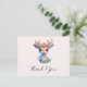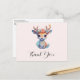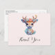 Obrigado postal com uma ilustração adorável. Um doce veado com olhos grandes, galhadas e um pequeno amigo da borboleta. design querido.