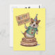 Cartão Postal Cachorro em pé sobre um bolo segurando um letreiro