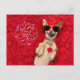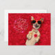 Cartão Postal Cachorro Engraçado nas Rosas vermelhas, Namorados