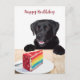 Envie uma mensagem doce com este Labrador Preto e cartão postal de bolo de arco-íris !