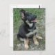 Foto de um lindo filhote de cachorro German shepherd sentado na grama.