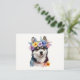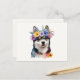 Cartão Postal Cachorro Husky Siberiano Fofo com Flores