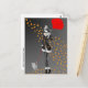 Cartão Postal Cachorro & Senhora Folhas de Outono Cinza Monocrom